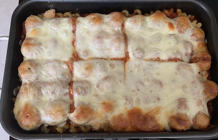 Layer some sauce on the bottom of your pan so the pasta won’t stick to the pan.
