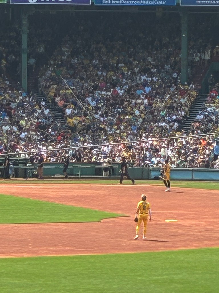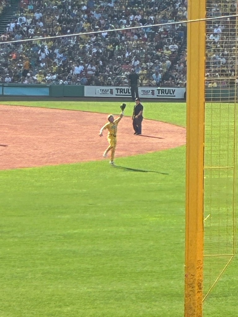 It was a fabulous game. Both teams did great, but the Savannah Bananas were on fire. Amazing trick plays, hits, dances, and they even brought out a couple Red Sox alumni which included Jackie Bradley Jr. 2018 World Series champion, and Bill Lee- Boston Red Sox hall of famer. The Savannah Bananas even won!!! Way to go Savannah Bananas! Their winning dance number was to Dancing Through Life from Wicked!
