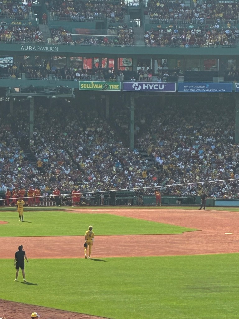 On Sunday July 6th, I went & saw the Savannah Banana baseball team vs the Firefighters at Fenway Park in Boston, MA. From start to finish, it was truly a memory I’ll remember for the rest of my life. There was never a dull moment. It is truly The Greatest Show/Game. Very entertaining. The Savannah Bananas were formed in 2016 by the owners Jesse & Emily Cole. When creating the team, they wanted to make the experience all about the fans, and they have a saying “Fans First!” If not familiar with the Savannah Bananas, they are a team from Savannah Georgia known for their entertainment during games, which includes everything from dance routines, comedic sketches, and trick plays. You never know what will happen at a game, which makes it even more fun. It still includes your traditional baseball, just with a twist. There are 11 rules in Banana Ball which include