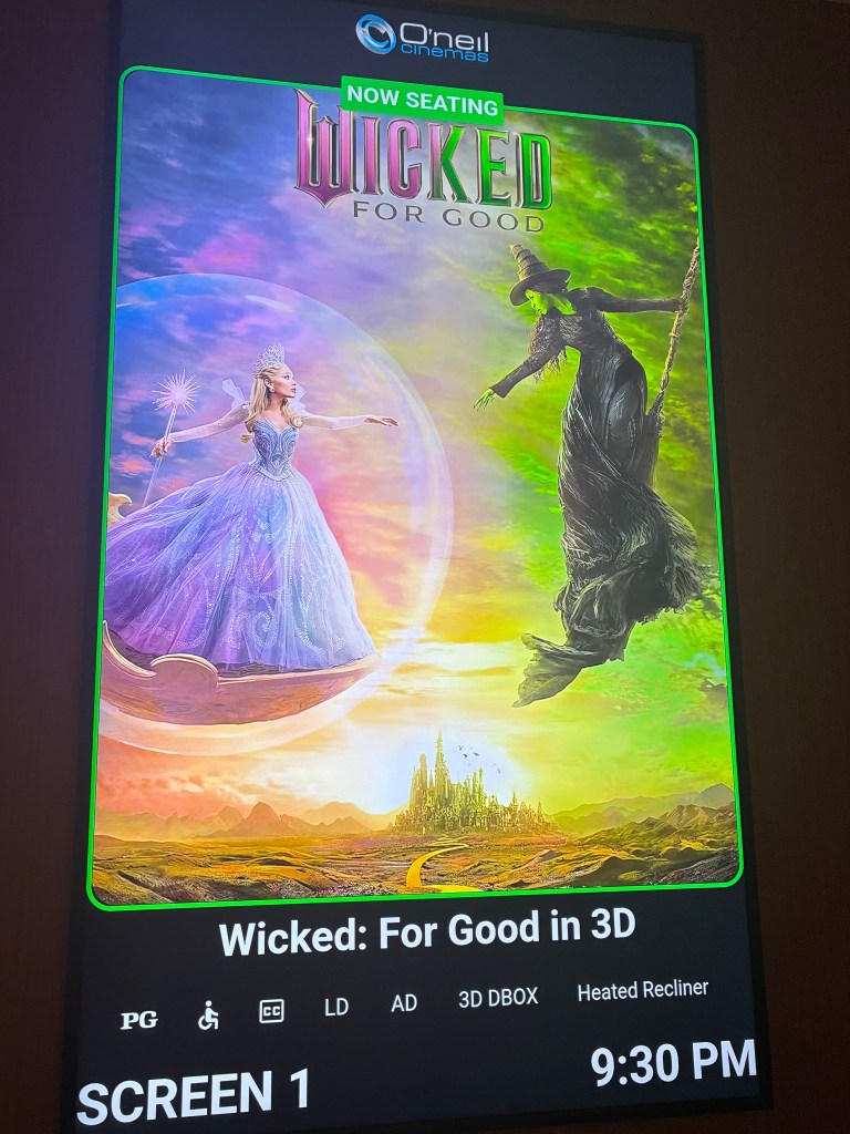 This was my second time seeing the film, and this time I experienced it in 3D with D-Box motion seats, which made the experience even more immersive and impactful! The profound bond between Elphaba and Glinda is simply indescribable, and the powerful message about friendship conveyed during the final song “For Good” was truly beautiful. Ariana Grande and Cynthia Erivo’s voices blended perfectly, creating a genuinely moving and emotional song. I personally couldn’t have picked better people to play these characters.